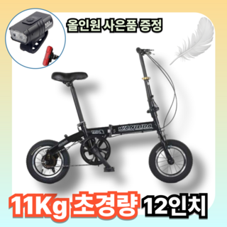 미니벨로 초경량 접이식 자전거 폴딩 바이크 12인치 휴대용 출퇴근 여행 마실용, 1개, 110cm, 블랙