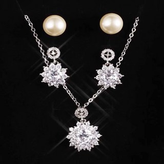 오엘라 천연 다이아 목걸이 세트 진주 귀걸이 목걸이 아이큐샵