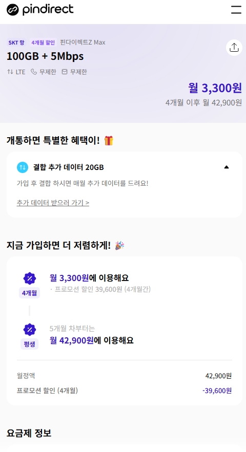 100기가 3300원